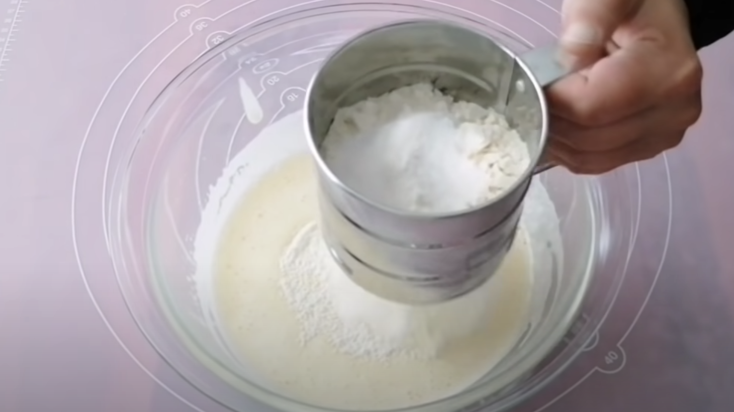 W kolejnym etapie stopniowo dodawać partiami przesianą mąkę wraz z proszkiem do pieczenia.