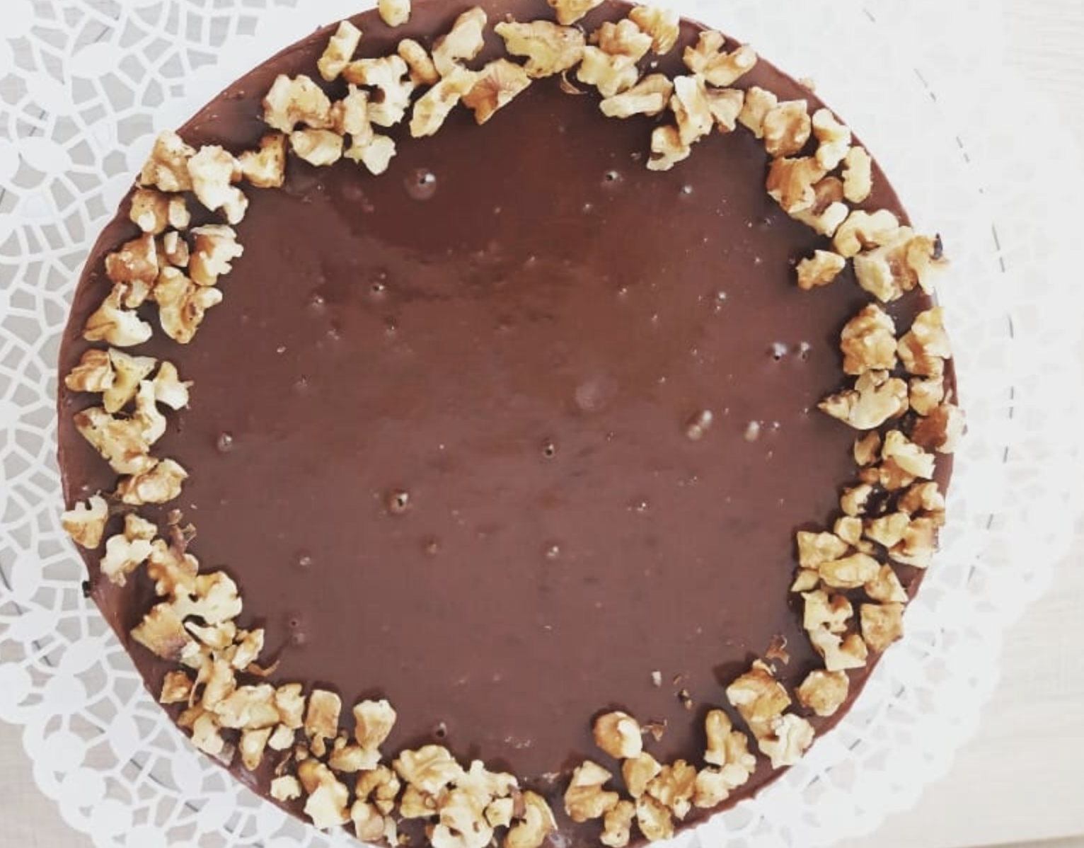 - Na koniec, w garnku przygotuj polewę z cukru, kakao, śmietany i masła. Ostudzony deser wyjmij z formy, polej polewą i równomiernie rozsmaruj. Udekoruj według uznania. Deser gotowy do podania.