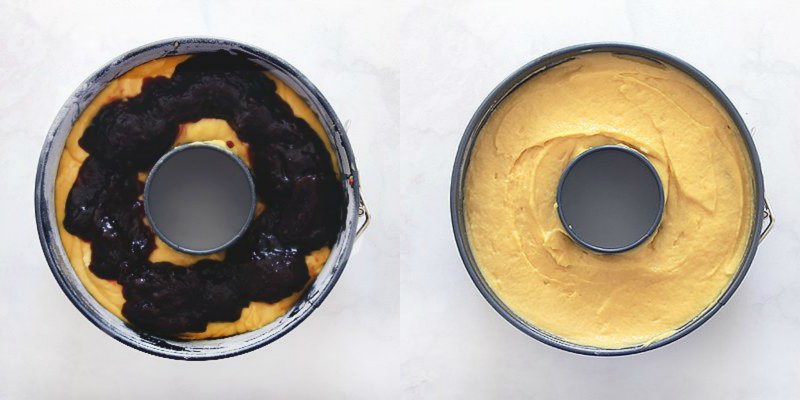 Włącz piekarnik, nagrzej go do 180 stopni i wstaw blachę. Babkę piecz około 40 minut.