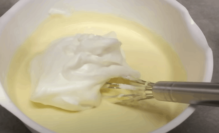 Ubite białka dzielimy na trzy partie. Jedną część dodajemy do powstałej wcześniej masy i ucieramy. Następnie stopniowo dodajemy resztę białek. Delikatnie mieszamy, aby do biszkopt nie stracił na puszystości.