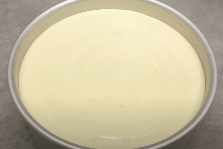 Przygotowujemy okrągłą formę o średnicy 20 cm. Może być też nieco mniejsza, kwadratowa – ważne, aby po umieszczeniu w niej ciasta, od jej górnej krawędzi pozostało przynajmniej 1,5 cm marginesu (jeśli masy będzie więcej, wlewamy tylko do wskazanego limitu). Spód blachy i jej zewnętrzne brzegi okręcamy folią spożywczą. Do tak zabezpieczonej formy możemy przelać gotową masę.