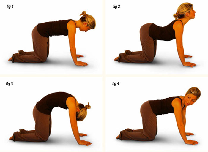 Następnie ugnij plecy do dołu, tak aby brzuch znalazła się bliżej podłoża. Oddychając swobodnie, wytrwaj chwilę w każdej pozycji. Ćwiczenie wykonuj starannie przez 2-3 minuty.