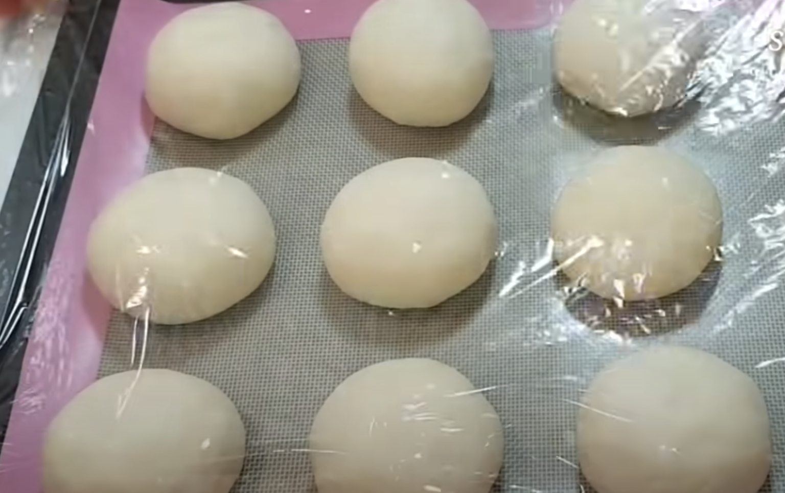 Uformuj z nich małe bułeczki, ułóż na blaszce wyłożone papierem, przykryj folią i pozostaw do wyrośnięcia na 20 minut.