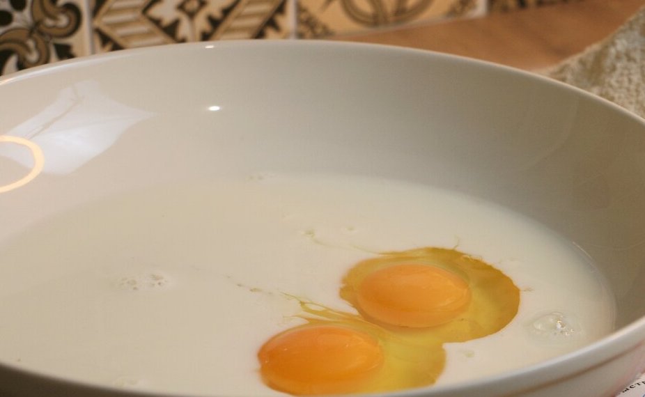 Najlepiej, żeby mleko było ciepłe, masło należy roztopić wystudzić do temperatury pokojowej. Mleko wymieszać z solą i cukrem, mieszać do momentu rozpuszczenia drobinek cukru. Wbić stopniowo jedno jajko po drugim, oraz dodać masło. Połączyć składniki.