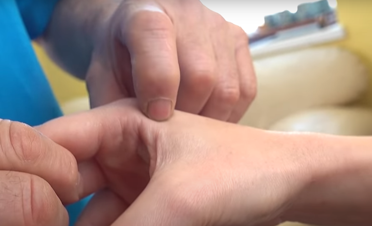 Zacząć należy od znalezienia odpowiedniego miejsca na dłoni, ponieważ to właśnie tutaj zbiegają się ze sobą ważne zakończenia nerwowe. Poproś kogoś, żeby przez 20-30 sekund naprzemiennie uciskał i masował to miejsce. Następnie poruszaj całą ręką – w górę, w dół, na boki, dosłownie we wszystkich kierunkach.