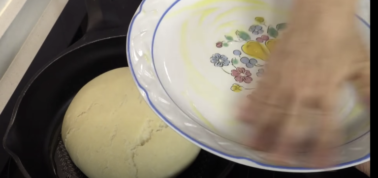 W czasie całego procesu pieczenia patelnia musi być przykryta, najlepiej szklaną pokrywką, tak aby obserwować postępy pieczenia chleba.