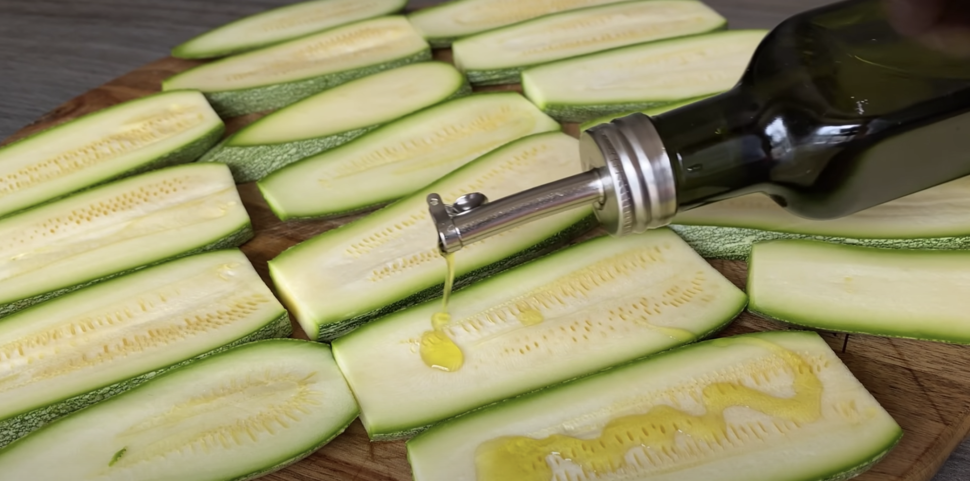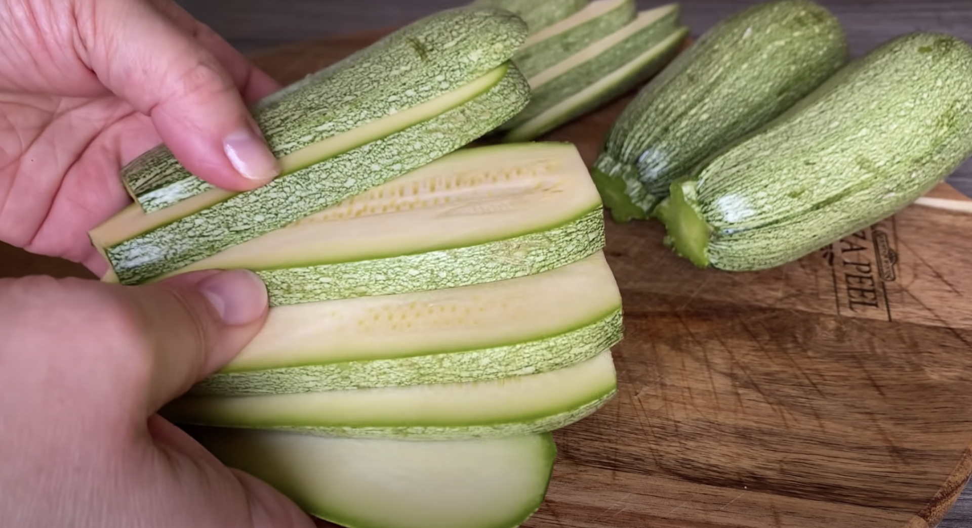Najpierw należy pokroić cukinię w plasterki grubsze, chudsze, jakie lubisz.