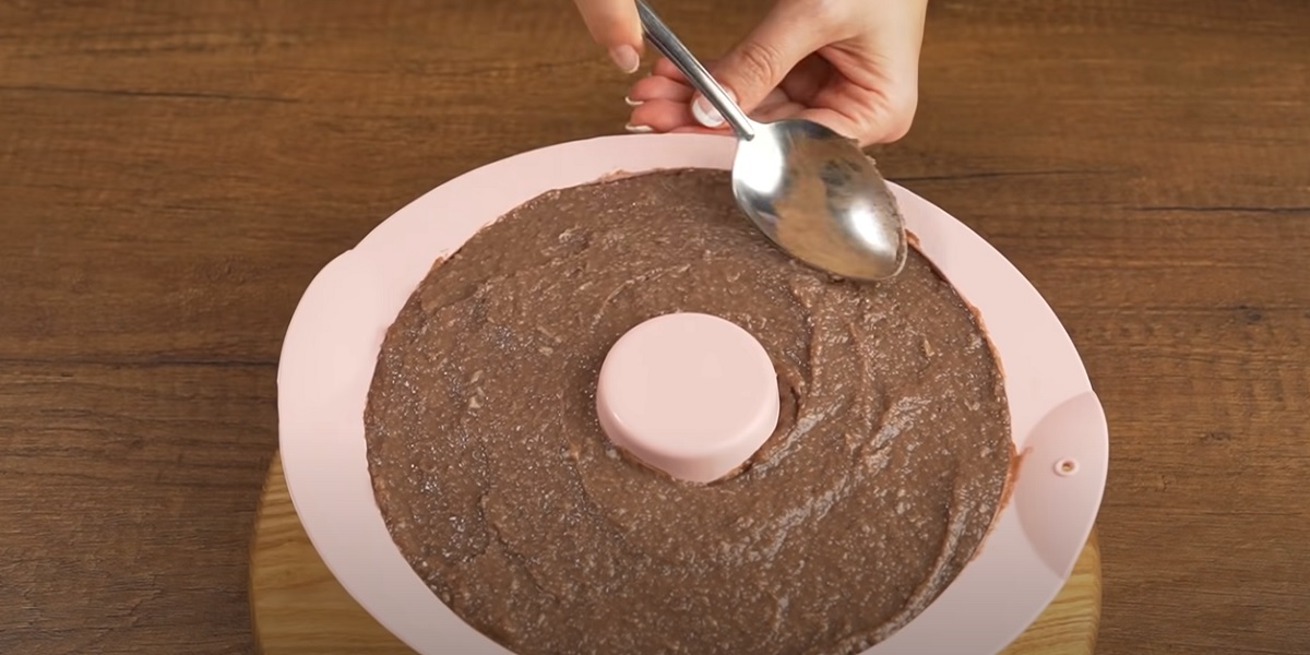 Do pozostałej mieszanki dodaj kakao. Mieszaj, aż masa będzie gładka. Rozprowadź równomiernie na białej warstwie.