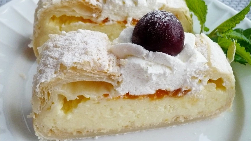 Kremowe nadzienie twarogowe w cieście francuskim: Puszysty, elastyczny deser z delikatnym nadzieniem smakuje bosko i poradzi sobie z nim nawet początkujący.