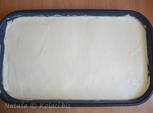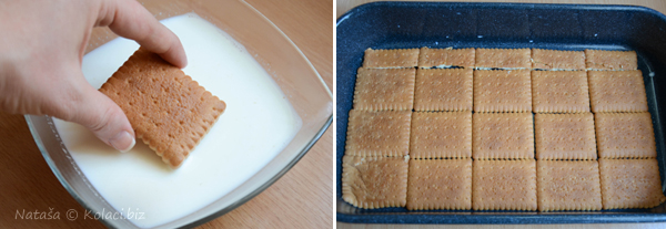 Herbatniki namocz w mleku, a następnie wyłóż nimi dno blachy do pieczenia.