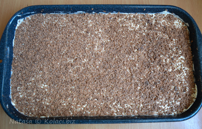 Wierzch uformuj przy pomocy łyżki. Na koniec posyp startą czekoladą.