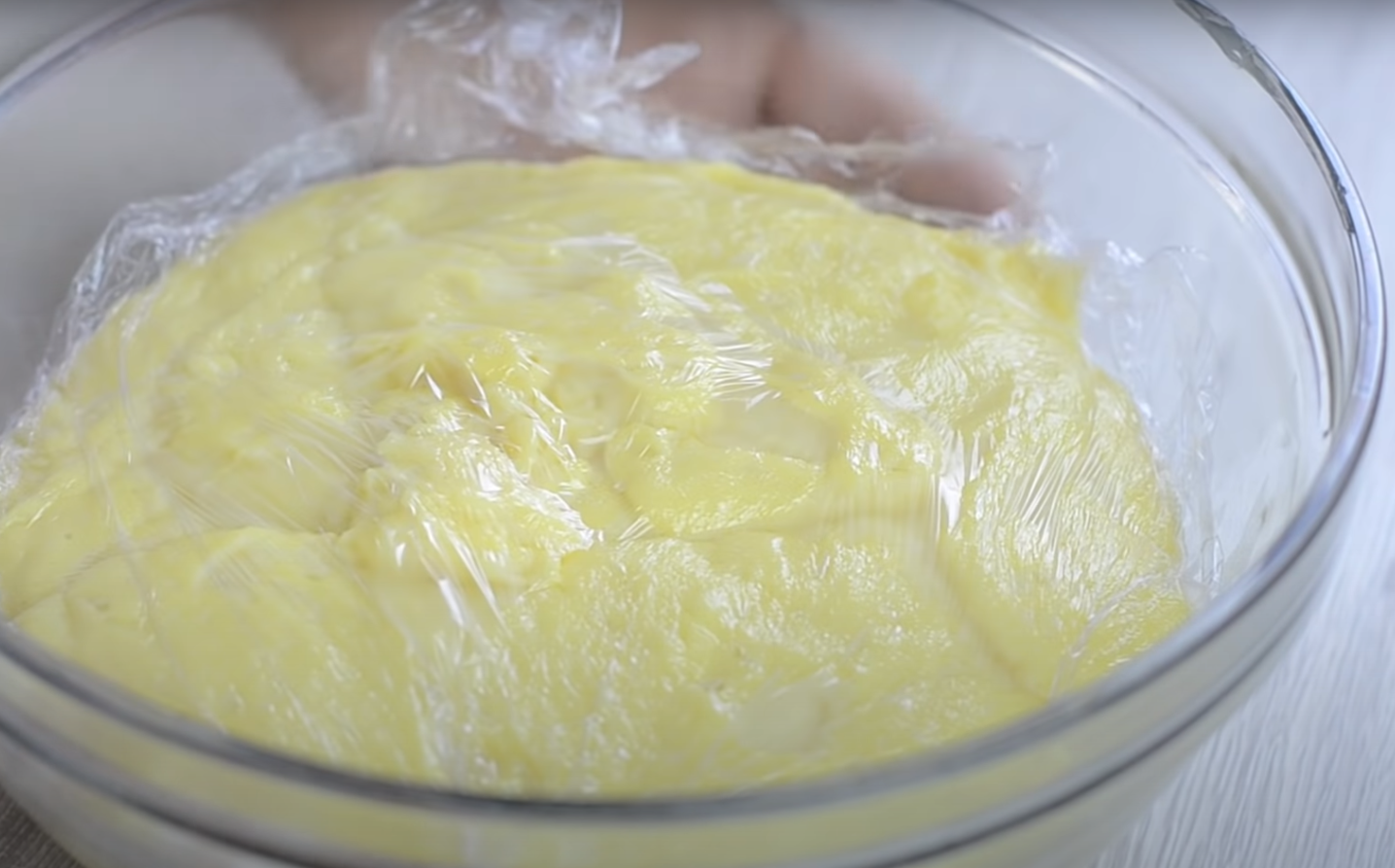 W czasie gdy biszkopt się piecze, wracamy do przygotowania kremu. Schłodzony ubijamy z miękkim masłem na gładką masę. Gdy biszkopt będzie chłodny, wykładamy krem na wierzch.