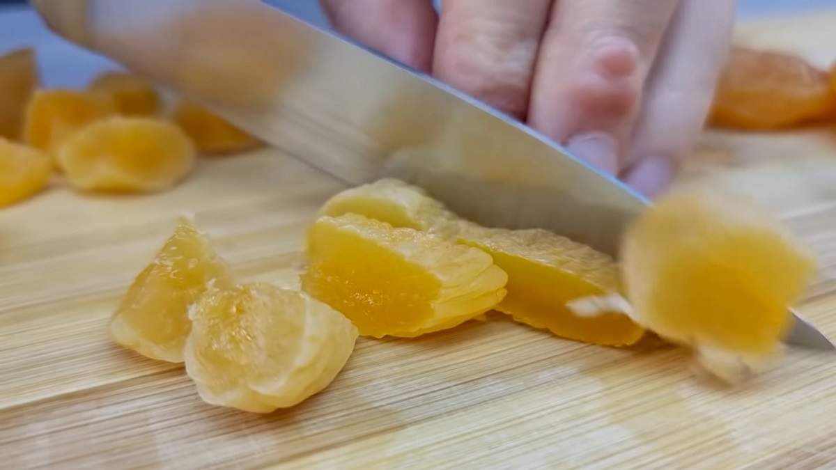 Suszone morele, suszone śliwki i orzechy włoskie posiekaj na duże kawałki.