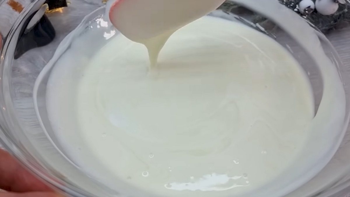 Wymieszaj śmietanę o temperaturze pokojowej 25% ze skondensowanym mlekiem.