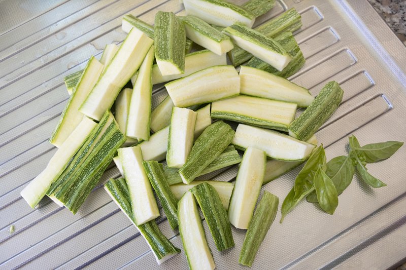 Przygotuj sobie wcześniej, w miseczkach wszystkie składniki. Cukinię umyj, i dokładnie osusz. Pokrój w około 8 centymetrowe paski (słupki).