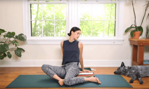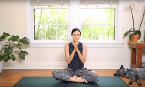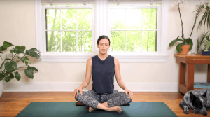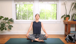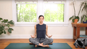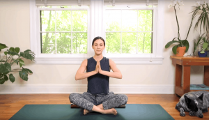 Połóż matę na ziemi, a następnie połóż na niej ręcznik. Możesz wybrać pozycję, która jest dla Ciebie wygodna. Albo połóż stopy na ziemi, albo skrzyżuj nogi. Możesz również wykonywać ćwiczenia na krześle, jeśli nie czujesz się komfortowo siedząc na ziemi. Połóż dłonie na kolanach i zamknij oczy. Możesz wziąć kilka głębokich, wydechowych oddechów. Postaraj się skupić na swoim oddechu i poczuć go. Otwórz oczy.