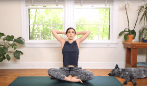 Trzymaj klatkę piersiową otwartą, jednocześnie odchylając łokcie do tyłu. Miej zamknięte oczy i utrzymaj tę pozycję przez kilka sekund.