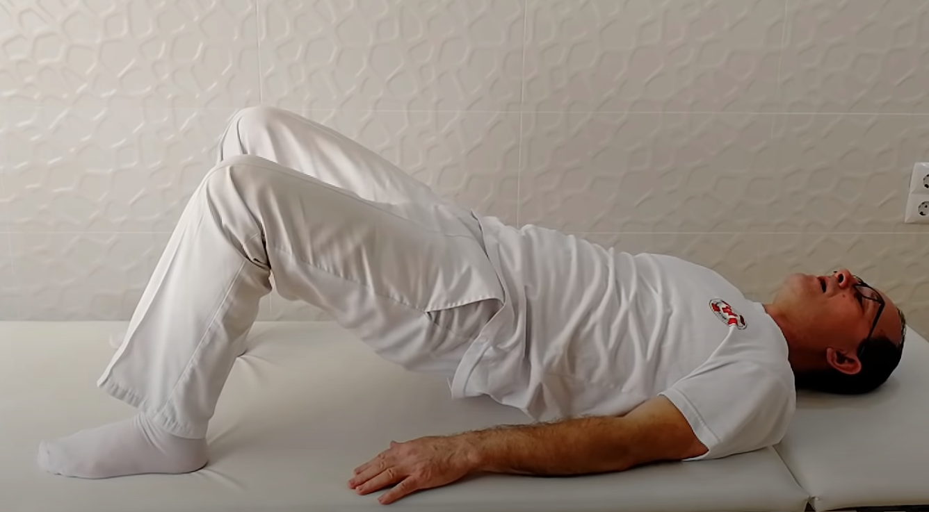 Możesz je wykonywać na podłodze lub kanapie, nawet w sytuacji ostrego bólu. Połóż się na plecach, nogi ugnij w kolanach, a ręce ułóż w pobliżu miednicy. W trakcie wydechu spróbuj maksymalnie unieść miednicę. Zrób około 15-20 powtórzeń. W przypadku, gdy ból uniemożliwia Ci uniesienie miednicy, przyciśnij ją do podłoża i puść. Ćwiczenie te wpływa na poprawę krążenia krwi w lędźwiowym odcinku kręgosłupa.