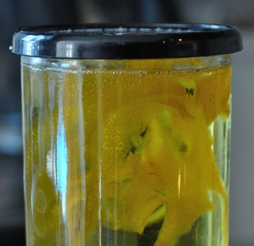 Dwie cytryny dokładnie umyj i obierz ze skórki. Włóż do słoika z odrobioną oliwy z oliwek. Tak przygotowaną cytrynę zamknij szczelnie w słoiku na dwa tygodnie.