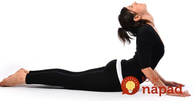 Na plecach, umieść ręce pod ramionami. Wznieś ciało podczas wdechu, wyprostuj ramiona. Następnie zgiń dolną część pleców i klatkę piersiową. Wydłużaj szyję. Pozostaw tę pozycję na 10-15 sekund, a potem powoli wróć.