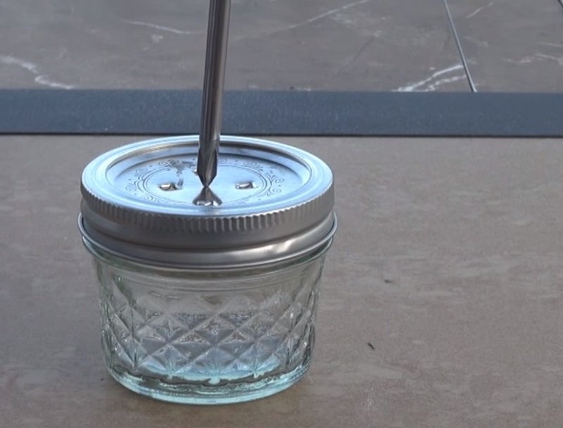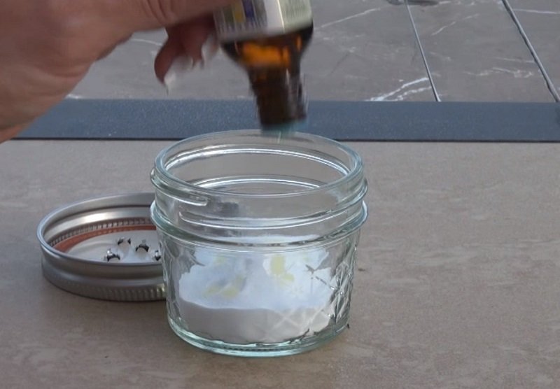 Zakręć słoiczek i wstrząsaj nim do momentu dokładnego wymieszania się sody z olejkiem. Po wymieszaniu składników w jego pokrywce zrób kilka niewielkich otworów – np. śrubokrętem lub gwoździem.