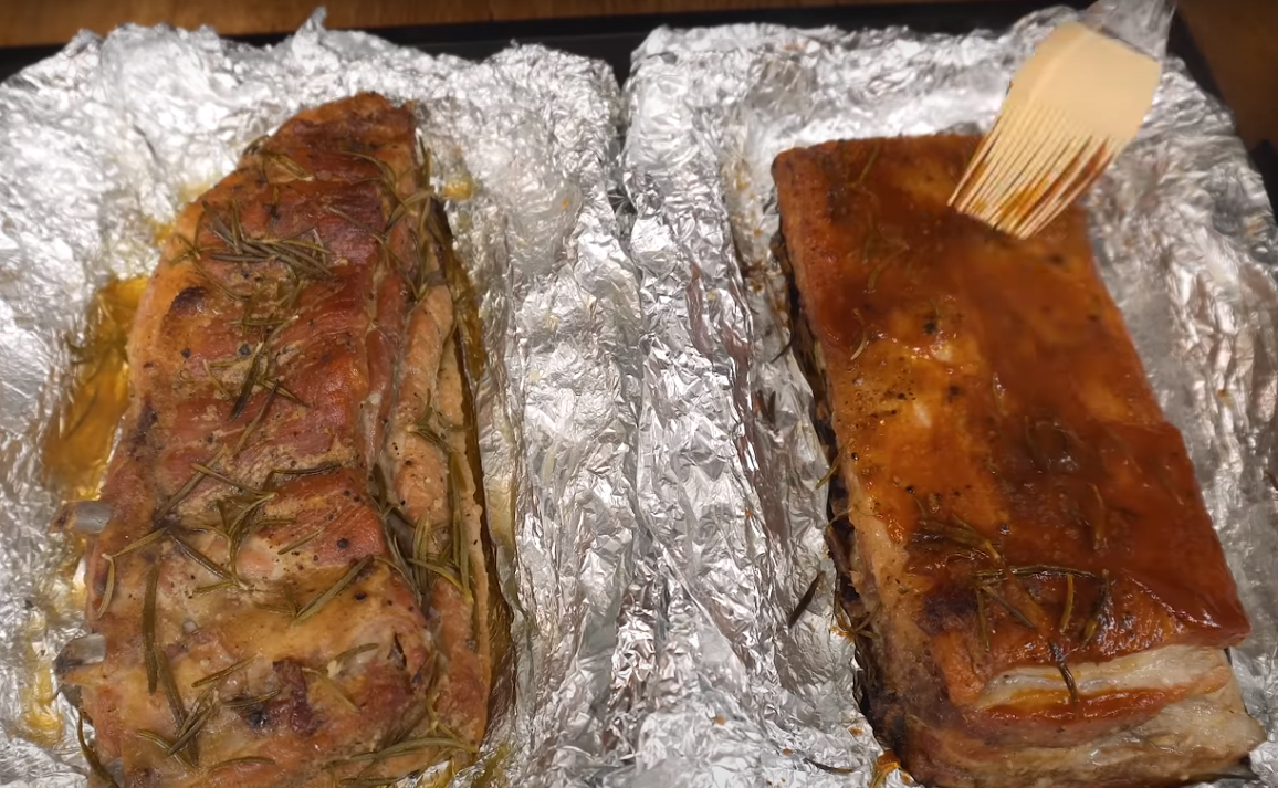 Mięso ułożyć na blasze do pieczenia i przykryć folią. Piec żeberka w piekarniku przez około. Piec żeberka przez około 30-40 minut w temperaturze 200°C. Piec jeszcze przez 50-60 minut.