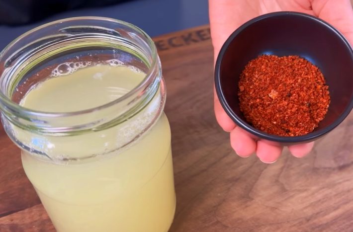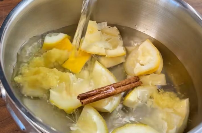 Zacznij od dokładnego umycia cytryny. Pokrój ją na pół i wyciśnij sok, a resztę owocu pokrój w kawałki. Obierz imbir i zetrzyj na tarce. Wrzuć go do garnka, dodaj kawałki cytryny, wlej wodę i wsyp cynamon. Gotuj, aż zacznie wrzeć, po czym zdejmij z ognia i pozostaw do ostygnięcia. Następnie odcedź płyn i dodaj do niego sok z cytryny i słodką paprykę, a potem dokładnie wymieszaj.