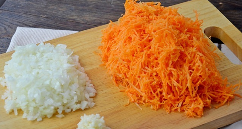 Warzywa koniecznie trzeba umyć i obrać ze skórki i łupinek. Marchewki trzeba zetrzeć na tarce na małych oczkach, z cebulą można zrobić to samo lub po prostu posiekać ją na bardzo drobne kawałeczki.
