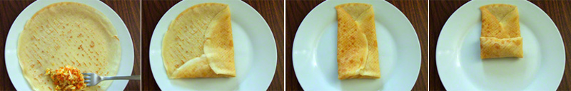 Naleśnika można podać po prostu w kopercie, od razu będzie smaczny. Jednak, można go także jeszcze odrobinę podsmażyć z farszem wewnątrz, tak, aby naleśnik zrobił się chrupki.