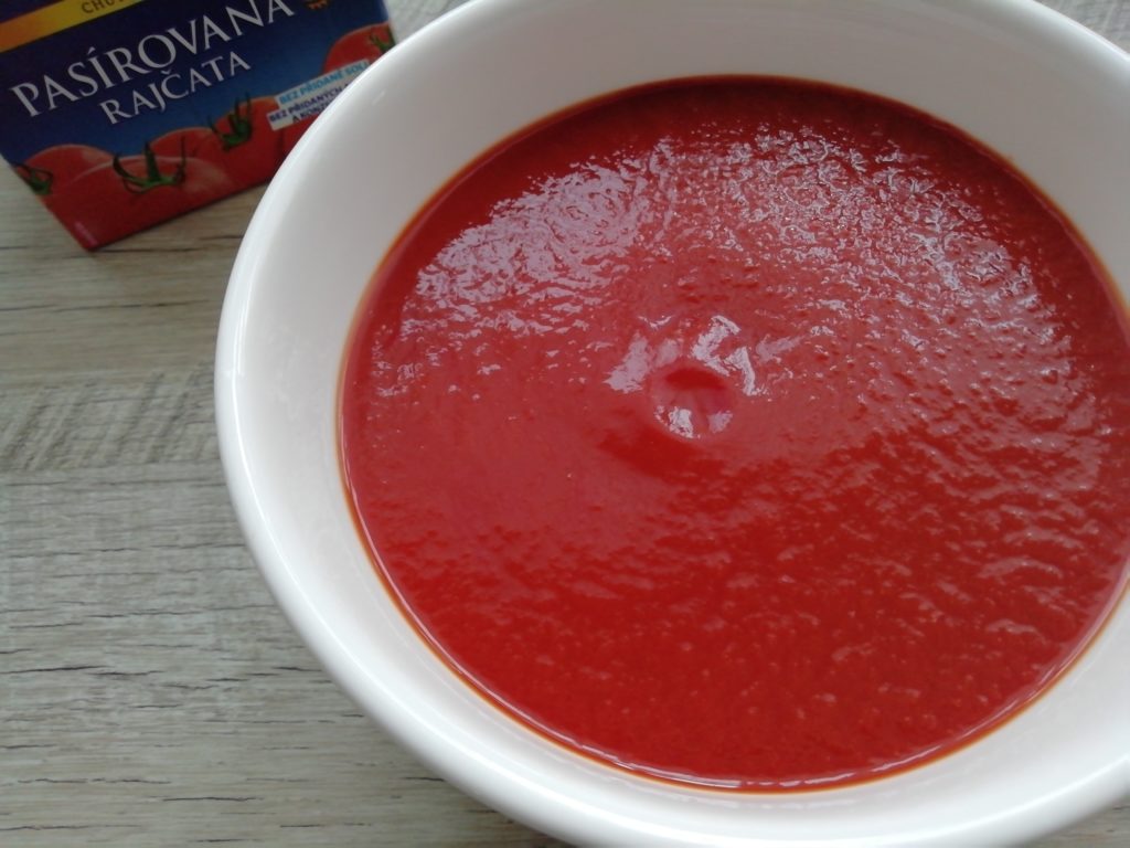 Posyp cukrem, a następnie mąką i mieszaj, aż nie pozostaną grudki. Cały czas mieszając wlewamy sos pomidorowy.