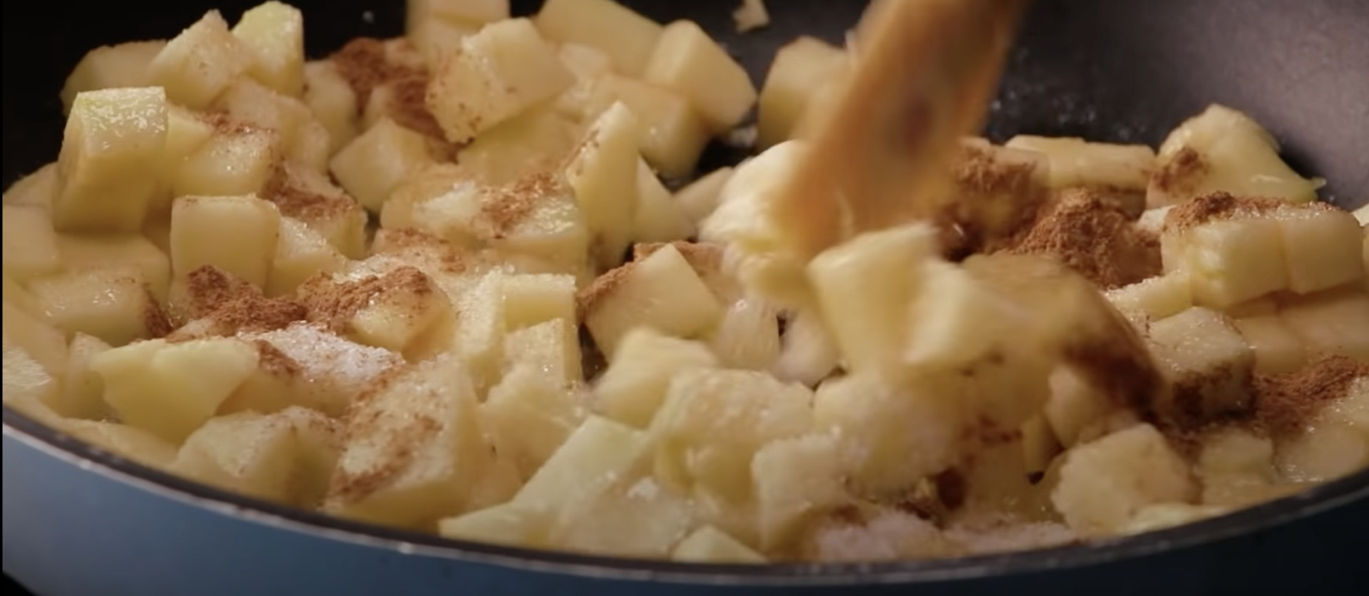 Potem umieścić na niej jabłka wraz z cukrem i cynamonem.