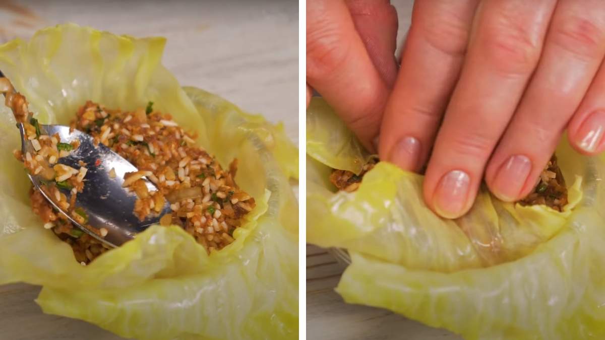 Wykrój z kapusty twardy środek i włóż ją do mikrofalówki na 15 minut. Następnie rozłóż ją na pojedyncze liście. Możesz też tradycyjnie przygotować liście kapusty we wrzącej wodzie, jak w trakcie robienia tradycyjnych gołąbków.
