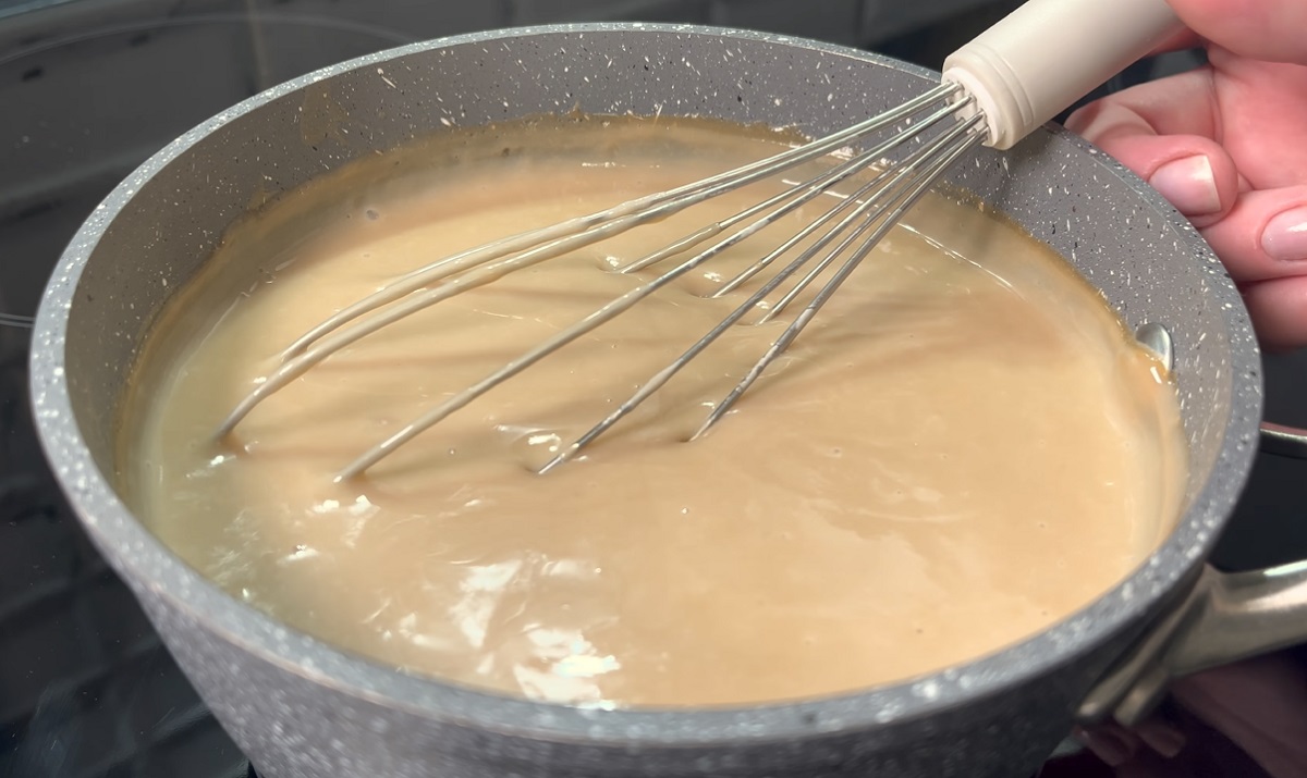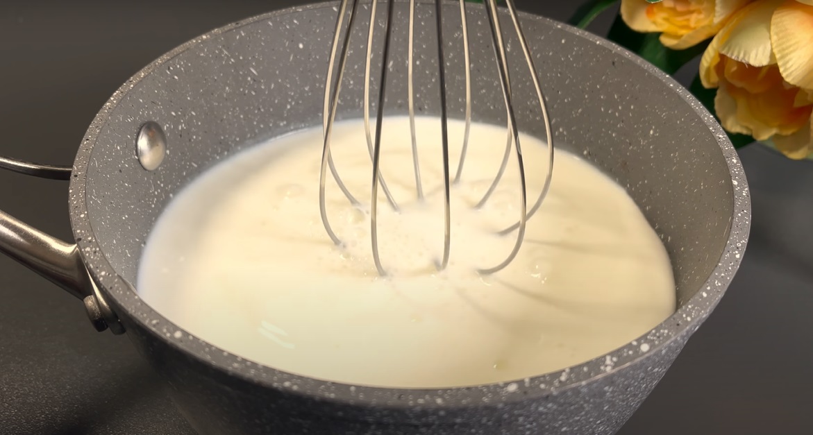 Rozpuść skrobię w 50 ml zimnej wody. Dodaj tę mieszankę do mleka i dobrze wymieszaj. Podgrzewaj mleko, mieszając trzepaczką, aż zgęstnieje.