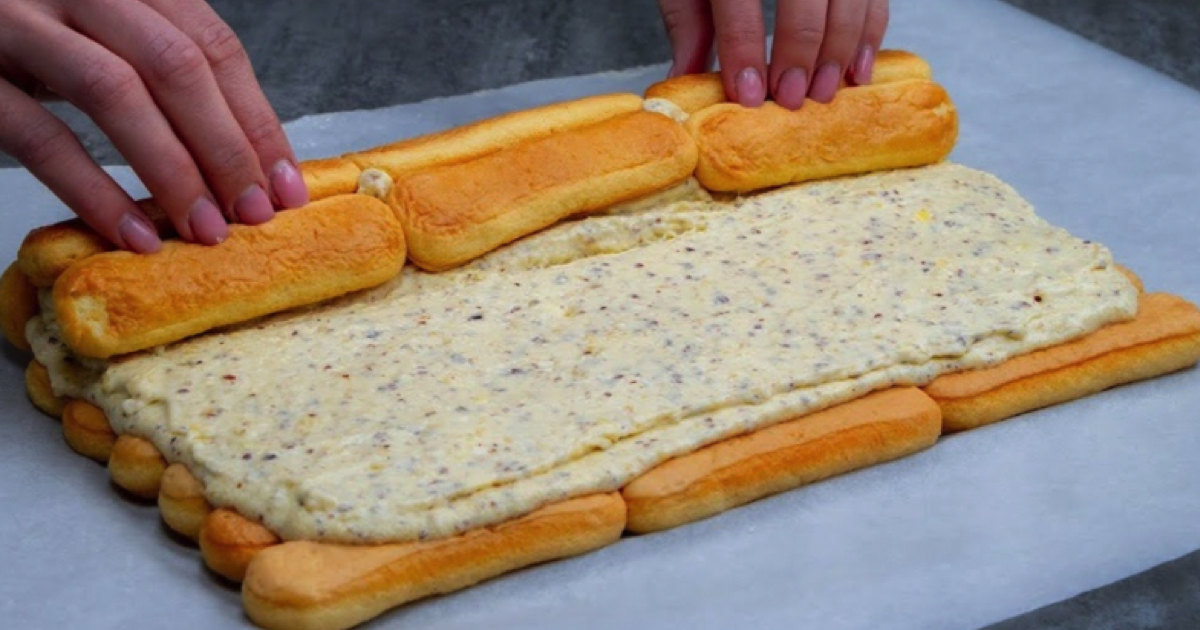 Blachę do pieczenia przykrywamy papierem do pieczenia i układamy obok siebie długie biszkopty , które wcześniej namoczyliśmy w mleku. Do garnka wlać budyń waniliowy , wlać mleko i wymieszać trzepaczką. Dodaj cukier i ugotuj gęsty budyń. Ostudź przez około 25 minut. Następnie ubijamy mascarpone w budyń.