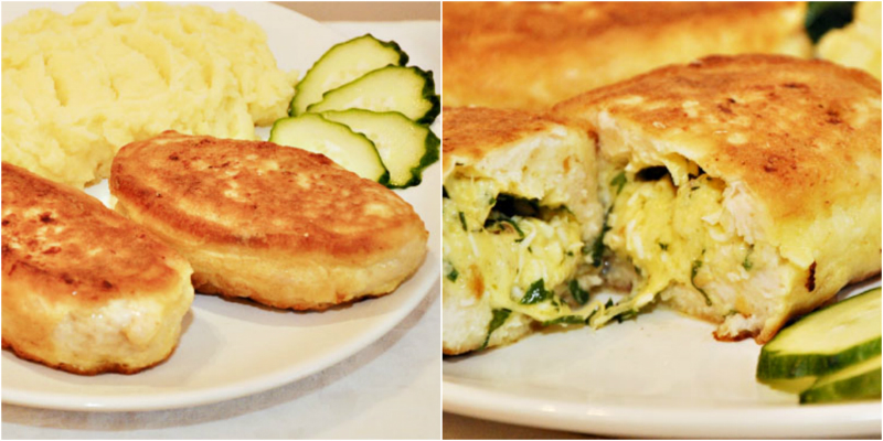 Weź trochę mielonego mięsa i uformuj z niego nieduży placek. W środku masy należy położyć niedawno przygotowane nadzienie i zwinąć, dokładnie zaciskając brzegi. W taki sposób przygotuj kotlety z pozostałego mięsa.