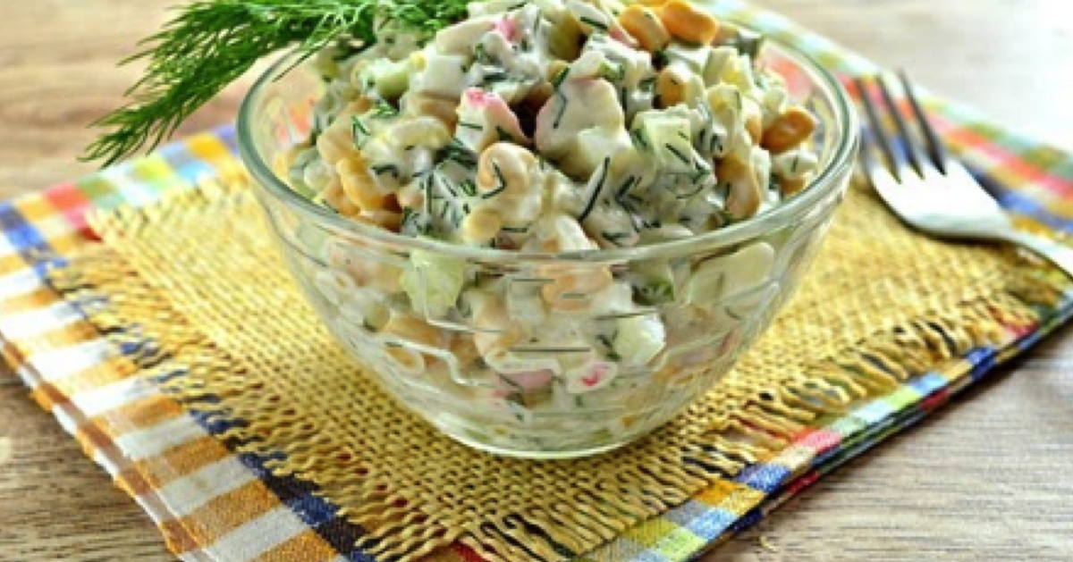 Domownicy zjedli całą w jeden dzień: Krabowa sałatka ze świeżym ogórkiem i kukurydzą na niedzielny stół.