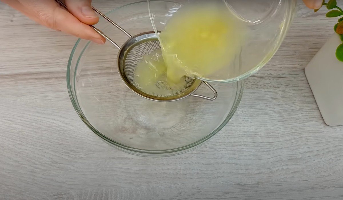 Wyciśnij sok z jednej cytryny. Przecedź przez drobne sito do średniego szklanego pojemnika. Wlej tam puszkę skondensowanego mleka.