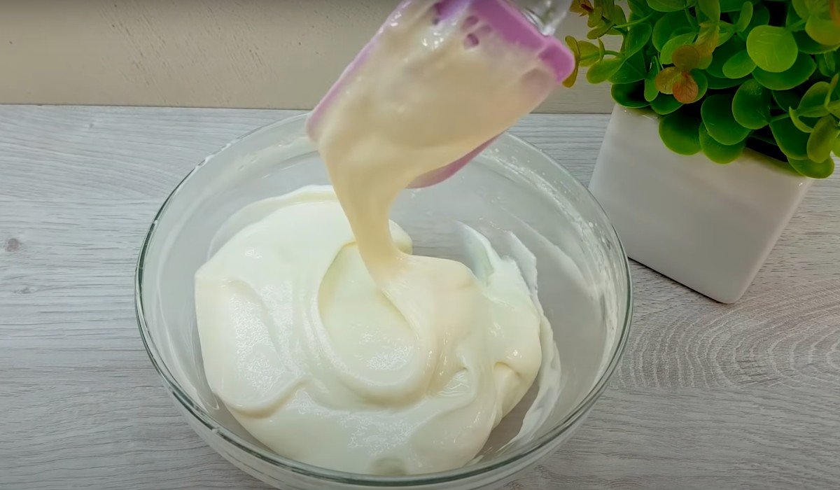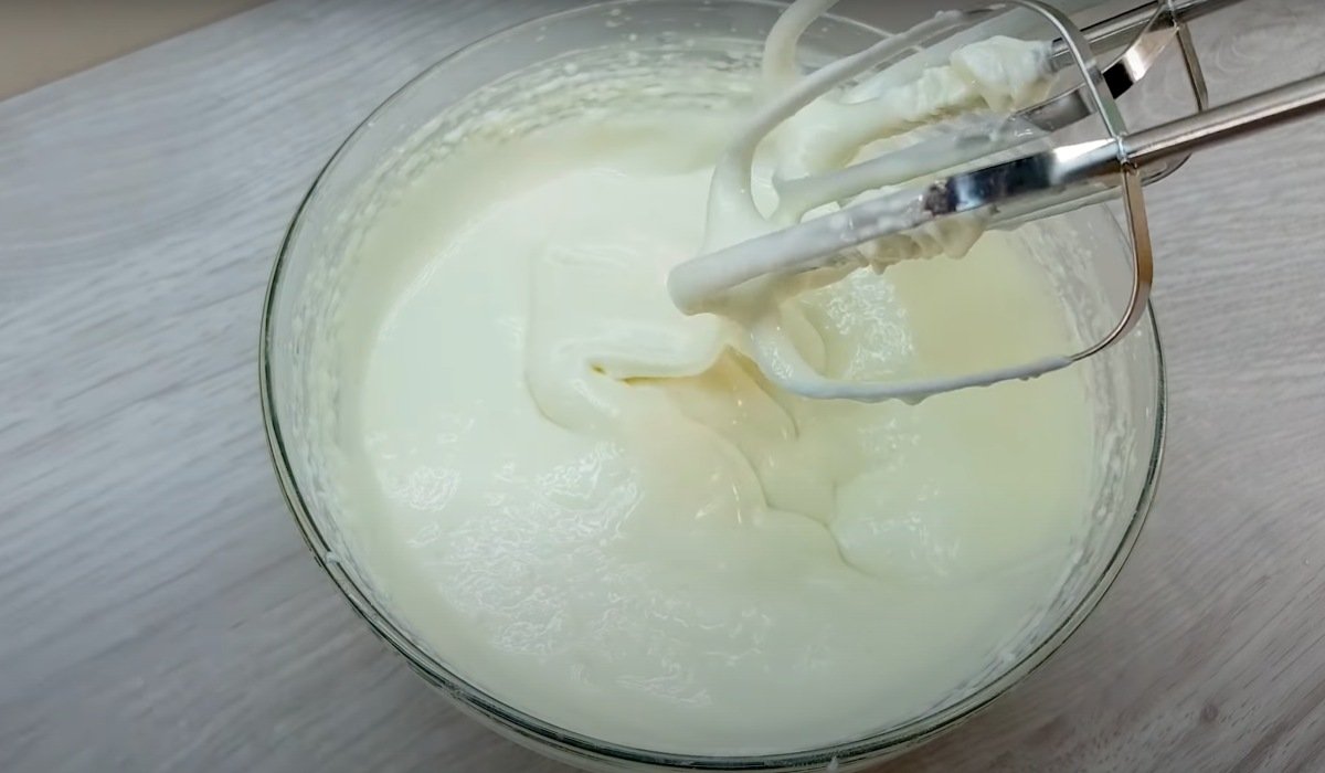 Ubijaj miksturę mikserem do uzyskania konsystencji jednorodnej śmietany.