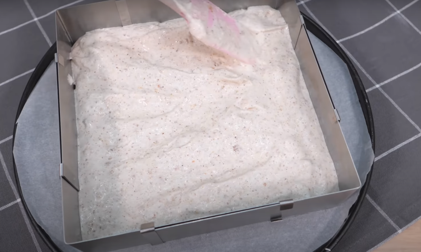 Kiedy piana będzie już dokładnie ubita, wymieszaj ją delikatnie (najlepiej za pomocą szpatułki lub drewnianej łyżki) z mieszanką mąki i orzechów. Formę wyłóż papierem, przelej ciasto i piecz w piekarniku nagrzanym do 170 stopni, przez około 20 minut.