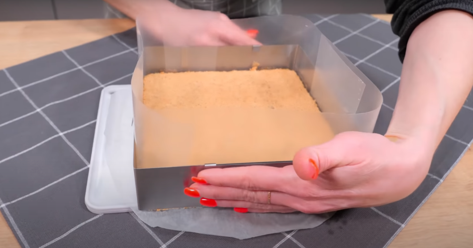 Rozpuść pozostałą czekoladę, a następnie dodaj do niej śmietankę i masło. Równomiernie wylej ją na całą powierzchnię ciasta. Wierzch możesz posypać także mielonymi orzechami lub startą ciemną czekoladą. Odstaw do lodówki na kilka godzin, a najlepiej na całą noc.