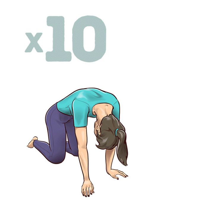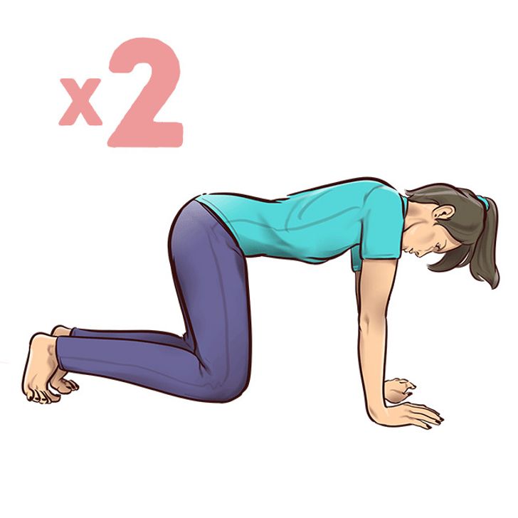Metoda 1: Uklęknij, połóż ręce na podłodze i wykonaj koci grzbiet, pozostając w tej pozycji przez 15-30 sekund. Następnie zegnij plecy w stronę podłogi.