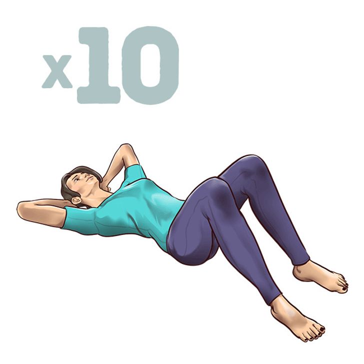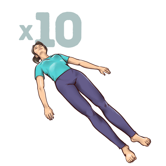 Metoda 1: Leżąc na plecach, podczas wydechu unieś ramiona i klatkę piersiową. Powtórz 10 razy.