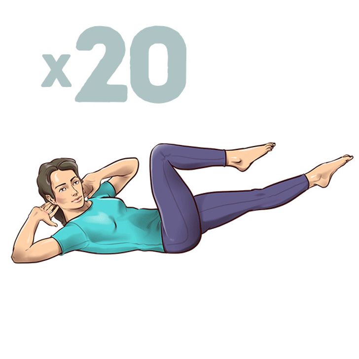 Metoda 3: Leżąc, podnieś nogi i zegnij je na przemian w kolanach, obracając głowę w przeciwną stronę.