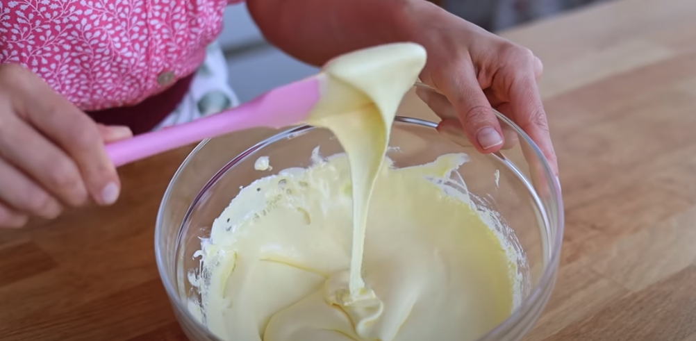 Przecedź kawowy sos przez sitko, aby pozbyć się ewentualnych grudek, i odstaw do ostygnięcia. Ubij 500 ml śmietany kremówki na puszystą masę. Uważaj, aby nie przebić śmietany. Stopniowo dodawaj ostudzone żółtka do ubitej śmietany, delikatnie mieszając, aż uzyskasz jednolitą masę. Przygotuj formę do lodów i ułóż na dnie cienką warstwę masy z żółtek i śmietany.