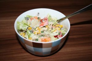 Pierwsze, co musisz zrobić, to pokroić paprykę i jajka na małe kawałki i umieścić je w misce. Kolejnym krokiem jest dodanie kukurydzy oraz pokrojonych łodyg czosnku do reszty składników. Potem, przygotuj magiczny sos – w osobnym naczyniu, połącz oliwę z sokiem z cytryny i dodaj sól i pieprz. Polej sałatkę tym aromatycznym sosem i energicznie wymieszaj. Gotowe! Ciesz się eksplozją smaku!