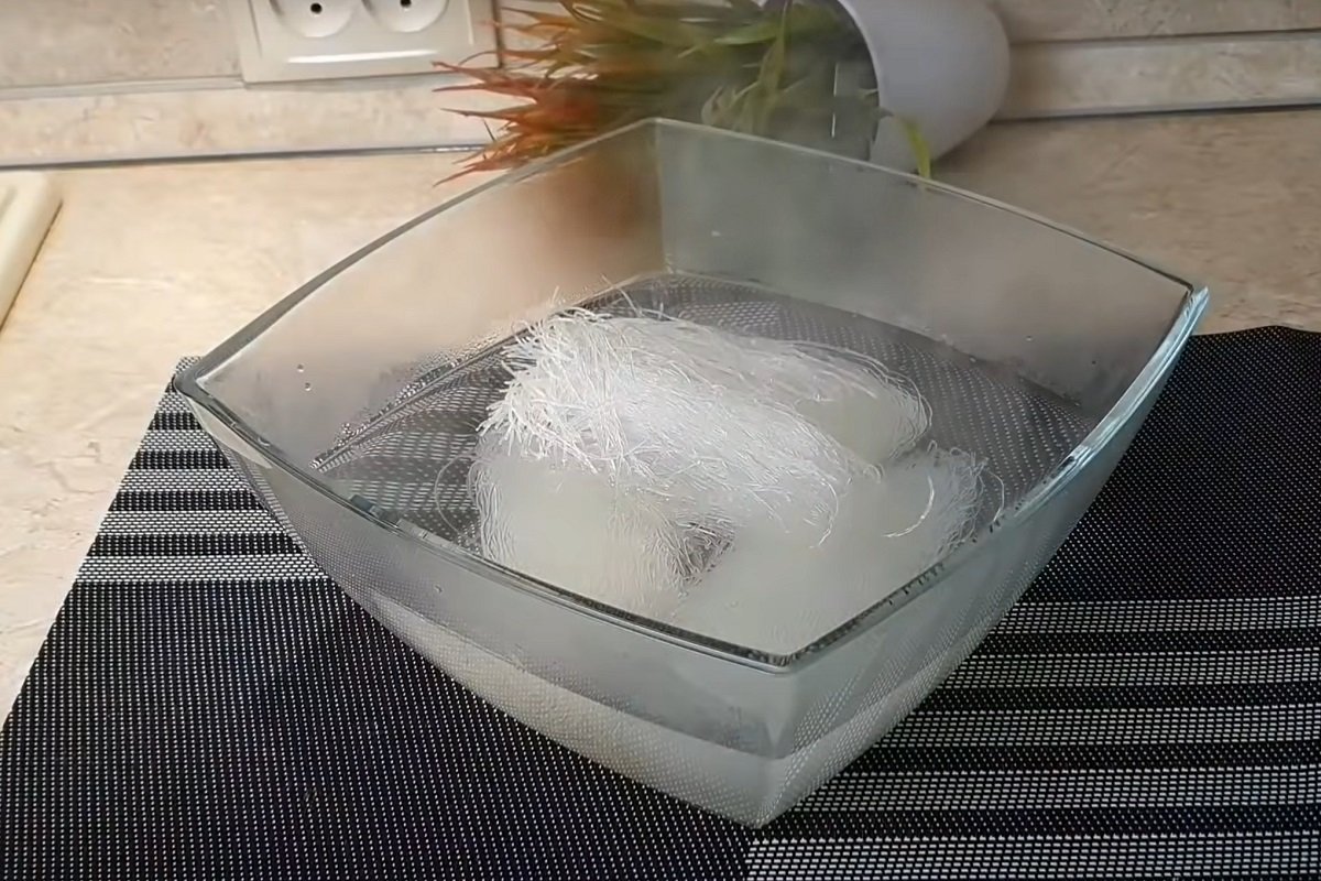 Najpierw namocz makaron w przegotowanej wodzie przez 10-15 minut.