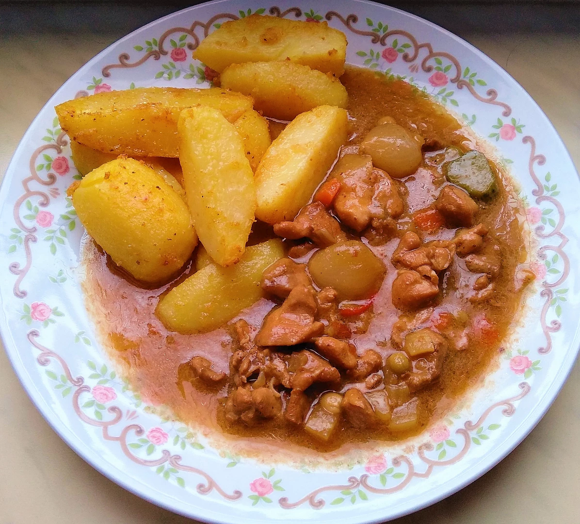 Ci, którzy lubią ostre dania, dodają marynatę, ci, którzy nie lubią, dodają bulion lub wodę. Wymieszaj skrobię w wybranym płynie. Gotuj mięso tylko przez około dziesięć minut, dodaj wymieszaną skrobię i zagęść.