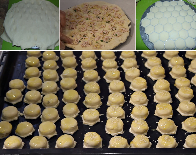 Wałkujemy, wyciągamy bułeczki z formy (wyciskamy je delikatnie, żeby nie zgubiły kształtu) i umieszczamy na blaszce wysmarowanej olejem. Trzeba jeszcze tylko posmarować je roztrzepanym jajkiem i posypać sezamem.