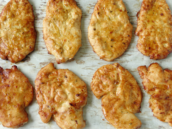 Mięso układamy na papierze pergaminowym, zalewamy pozostałą nam marynatą i w takiej postaci pieczemy go przez 40 minut. Możemy być z siebie dumni, ponieważ po upływie 40 minut nasze kotlety z kurczaka będą gotowe do podania!