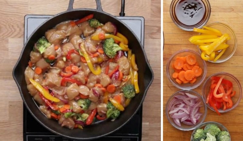 - 400 g pokrojonego w kostkę fileta z kurczaka